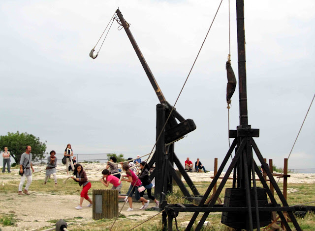 We became statistics at the amazing hilltop fortress of Les Baux de Provence, joining the two million visitors per year. The site dates back to the 10th century and is a lively visit with some tough walking required and ancient war machines in action. Views are fantastic here. Here also we had our first view of the region’s Santons, handmade figures usually in local costume, particularly famous for their crib scenes.